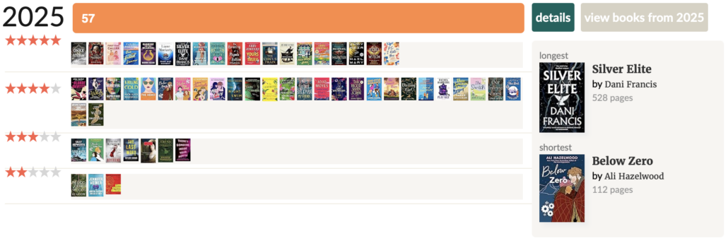 I’m really happy with my reading last year. I crushed my goals and I read more in 2025 than I’ve ever read in a year before. I’d love to try to surpass that goal this year.